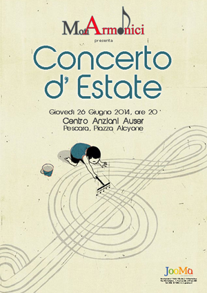 Concerto d'Estate al Centro Anziani Auser Creato: 19 Giugno 2014 L'Associazione Culturale Moti Armonici presenta Concerto d'Estate al Centro Anziani Grue, Martedì 26 Giugno 2014 ore 20, Piazza Alcyone, Pescara.